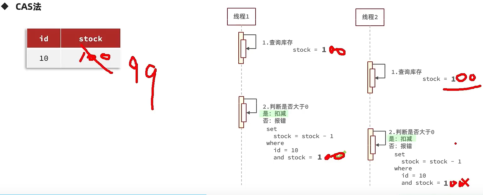 1、synchronized锁不要加在createVoucherOrder方法上,虽然满足要求,但会影响性能。因为它的范围是整个方法,锁的对象是this(当前类),意味着所有多线程对象都会加锁,且锁的对象都为同一个,会串行执行,前面的锁不释放,就会一直等待,影响性能。