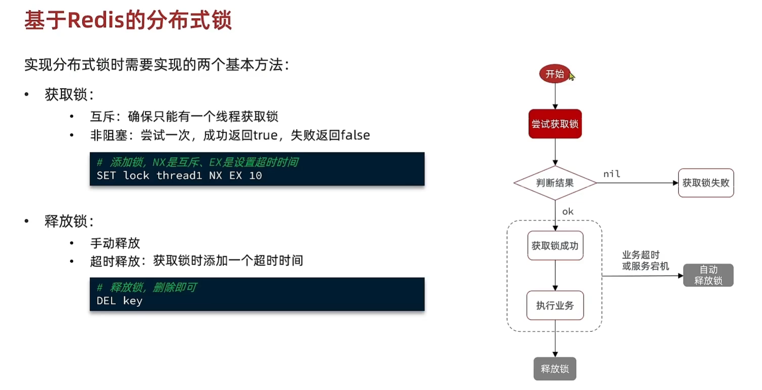 1、Redis分布式锁可以用命令SETNX lock thread1和命令expire lock 10,但要保证是一个事务,所以用命令SET lock thread1 NX EX 10。