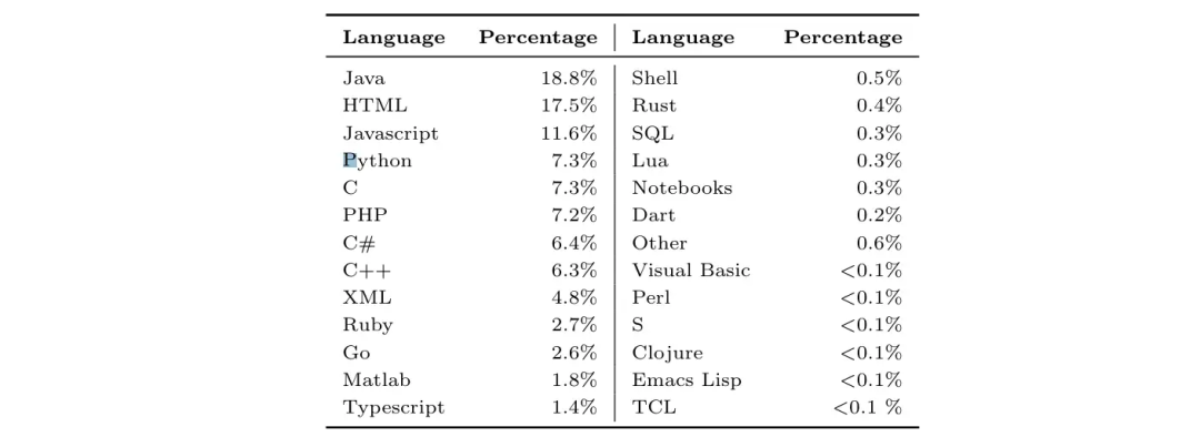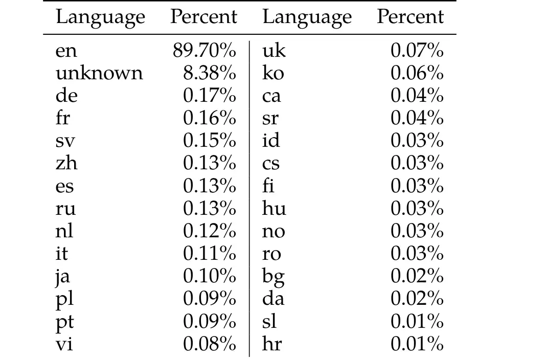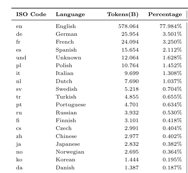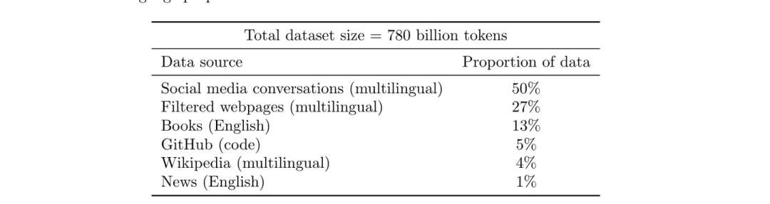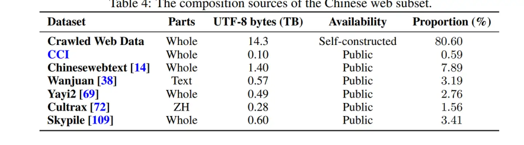 除了部分中文的语言配比外,更多的数据信息未公开。