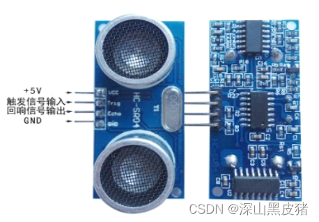 VCC 供 5V电源,GND为地线,TRIG 触发控制信号输入,ECHO 回响信号输出等四个接口端。