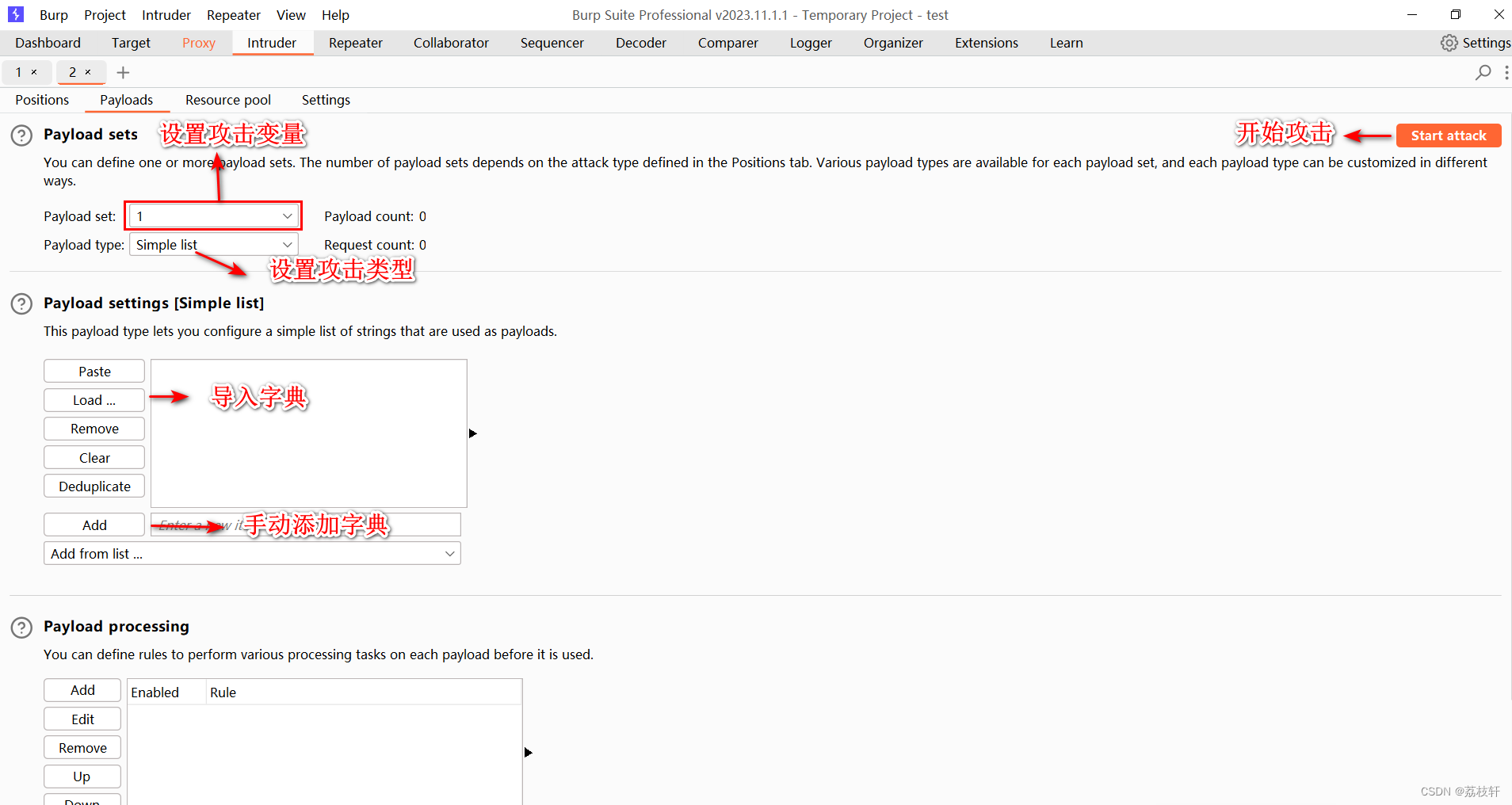 3:Payloads 设置payload,配置字典