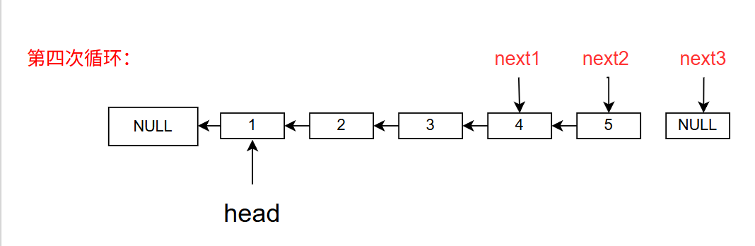 4. next3 = next3->next // next3指向4当前状态: