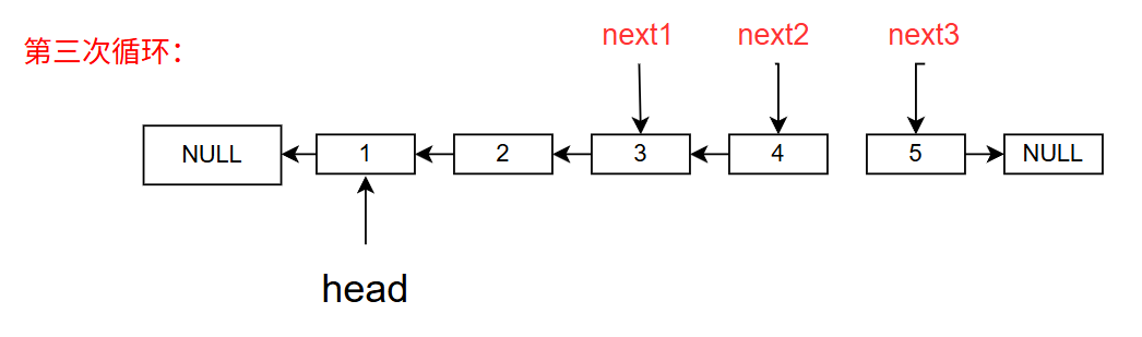 4. next3 = next3->next // next3指向3当前状态: