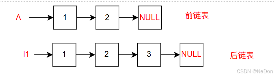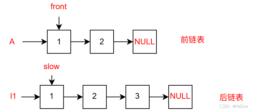 至此,我们已经获取了两个链表,分别为前链表和后链表