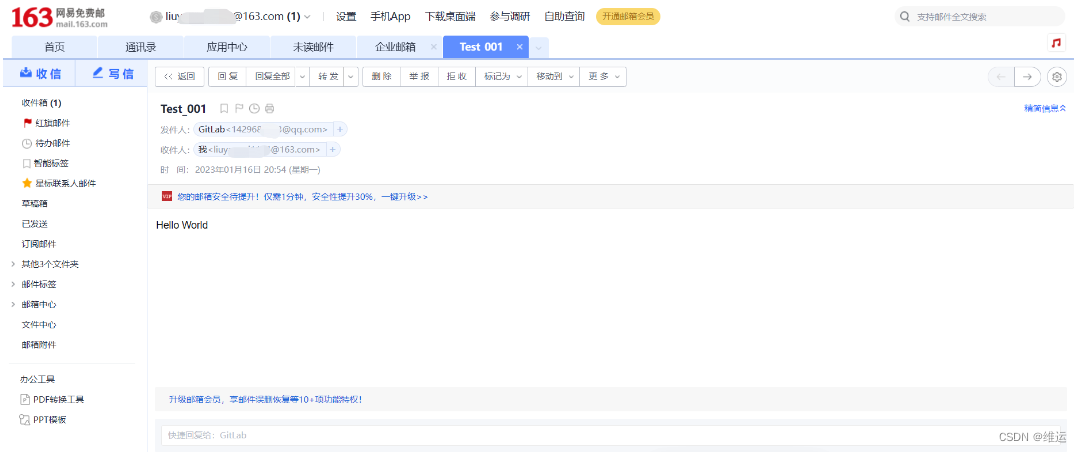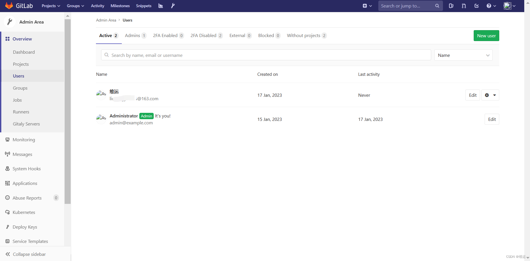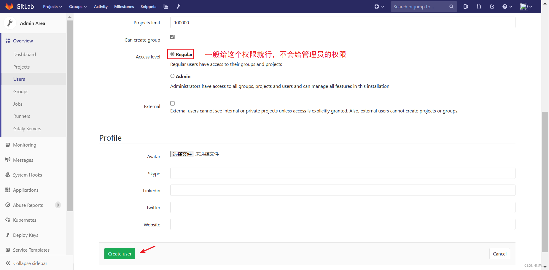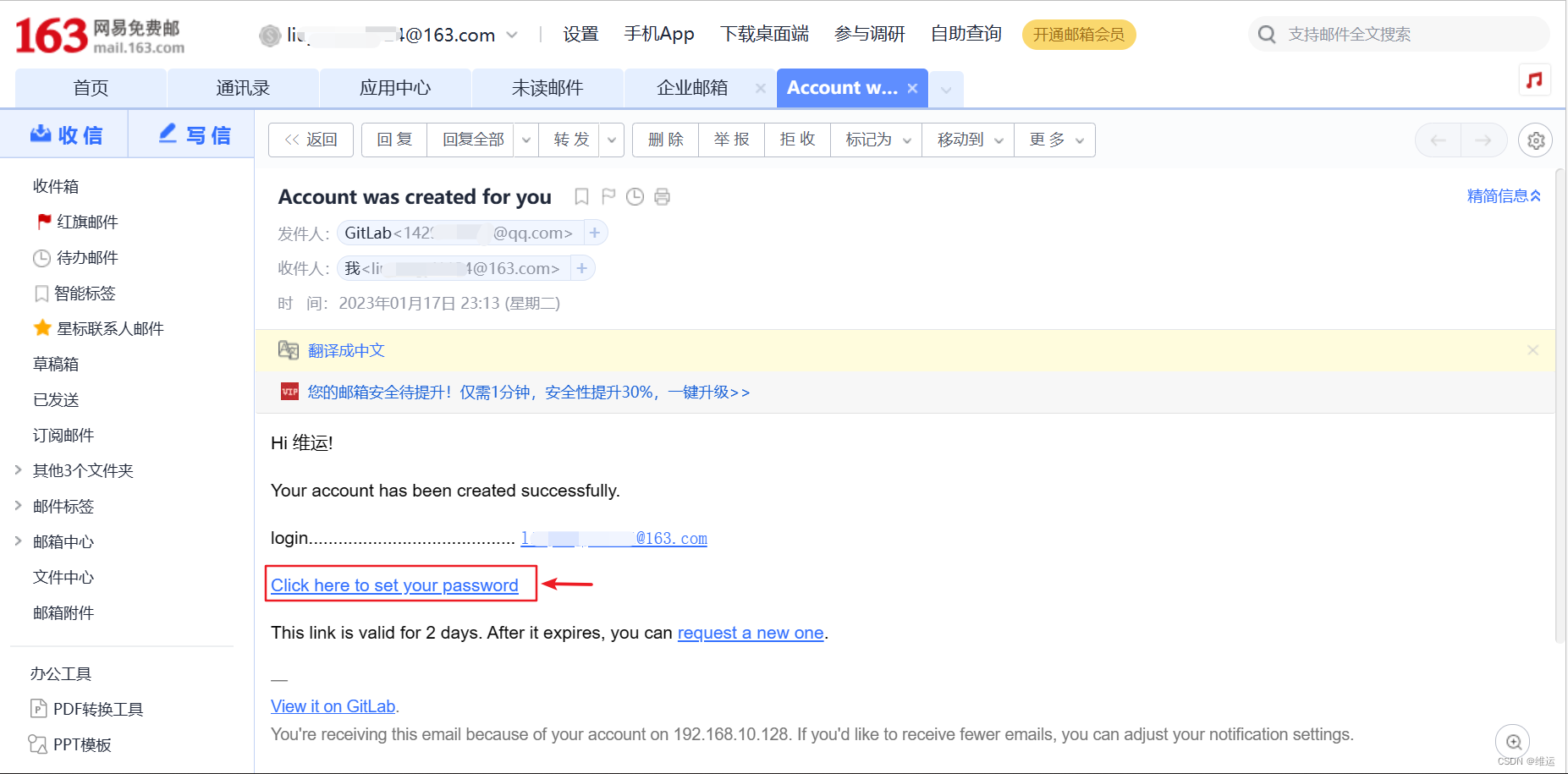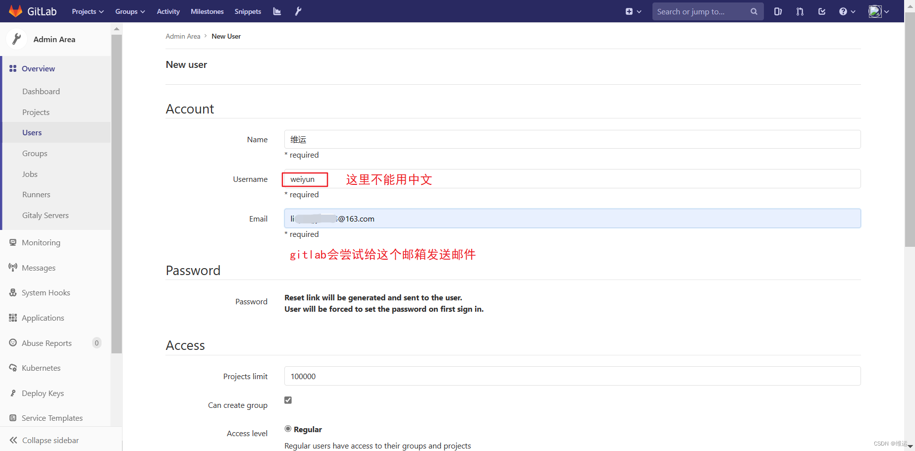 #创建gitlab用户,更改用户权限等,会自动发送给该用户邮件告知。