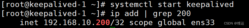 | keepalived-1 | CentOS 7 | 192.168.10.130/24 | 高可用负载均衡集群-主,vip地址为192.168.10.200 |