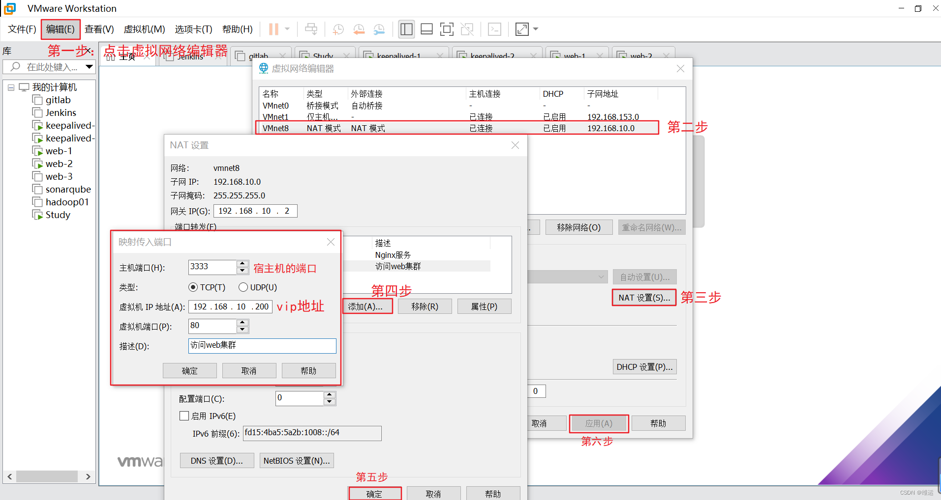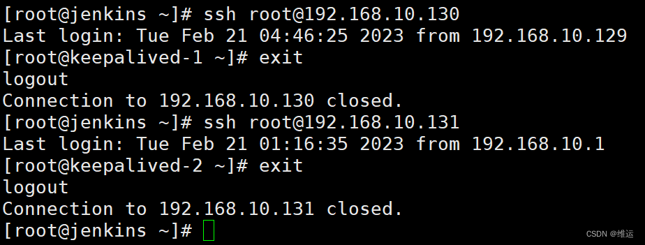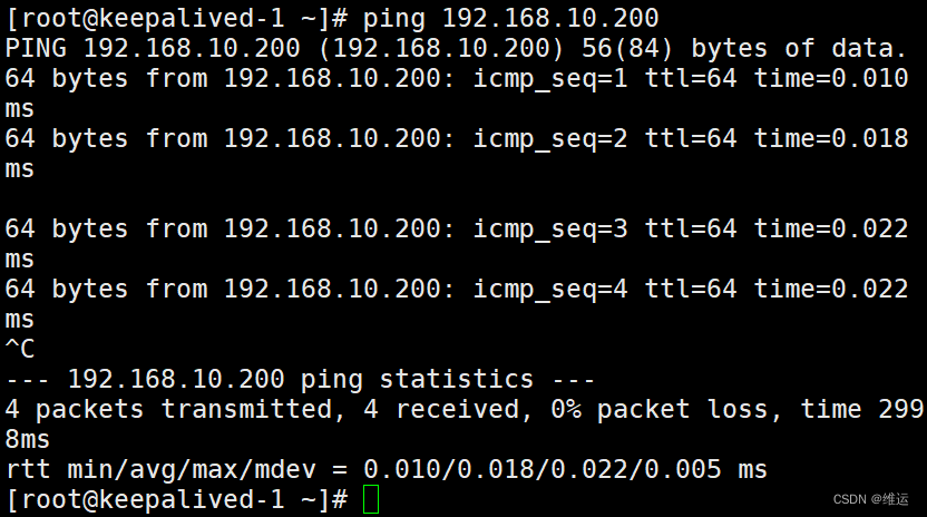 | keepalived-2 | CentOS 7 | 192.168.10.131/24 | 高可用负载均衡集群-备,vip地址为192.168.10.200 |