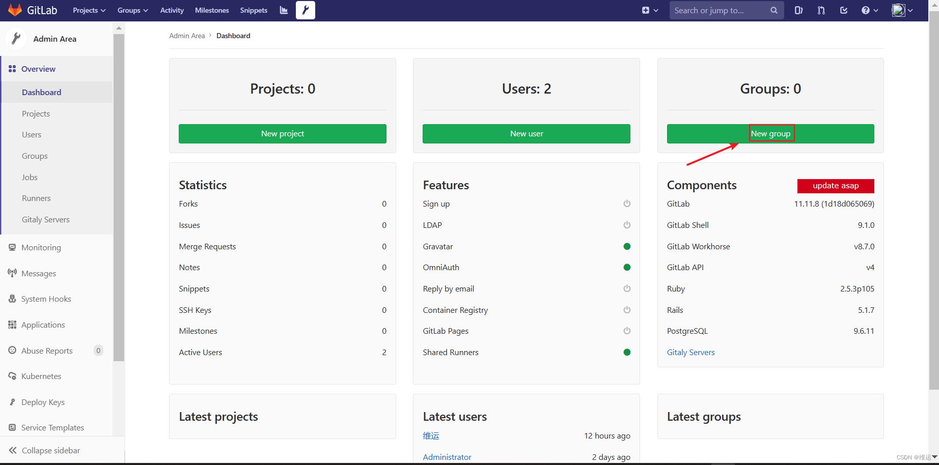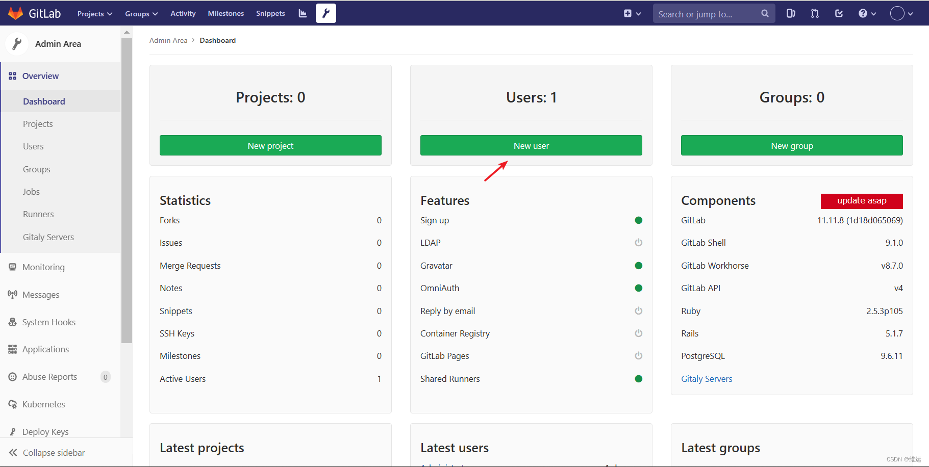 使用的是清华大学镜像源,Gitlab使用的版本是gitlab-ce-11.11.8,下载地址:https://mirrors.tuna.tsinghua.edu.cn/gitlab-ce/yum/el7/gitlab-ce-11.11.8-ce.0.el7.x86_64.rpm