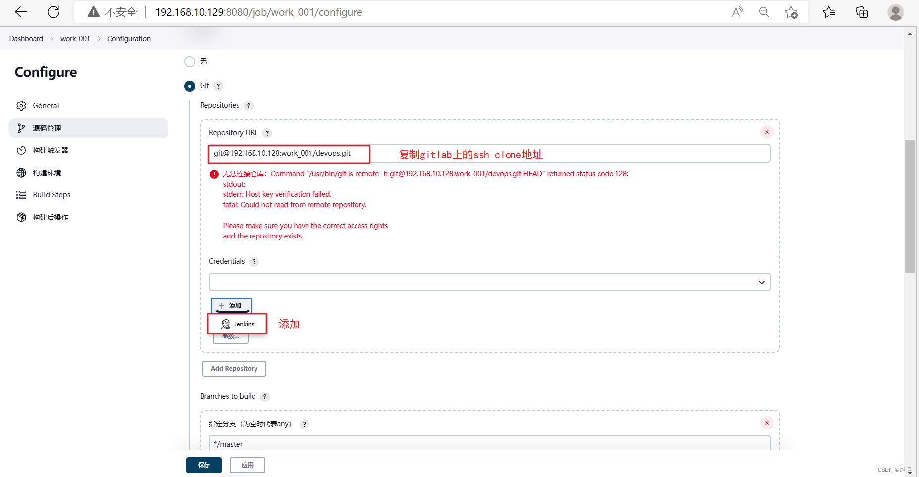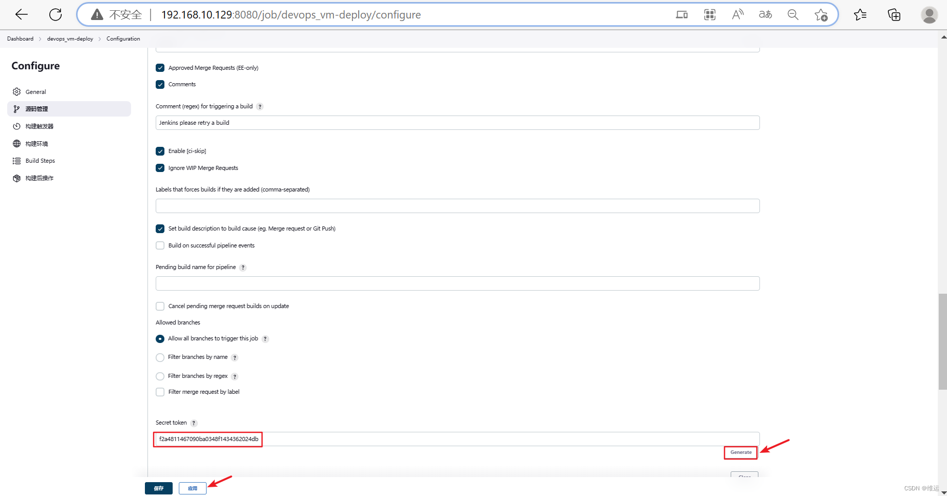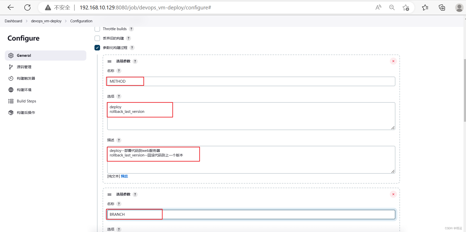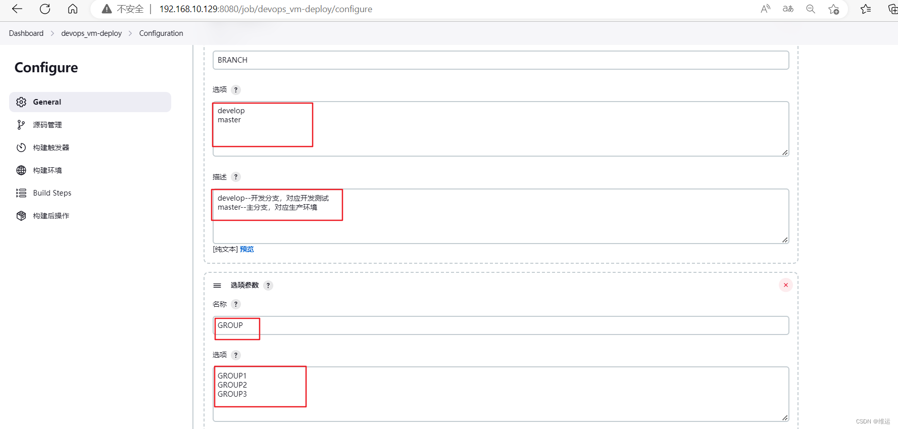 - 构建其他部分web服务器,此时分支选择主分支、develop分支都可