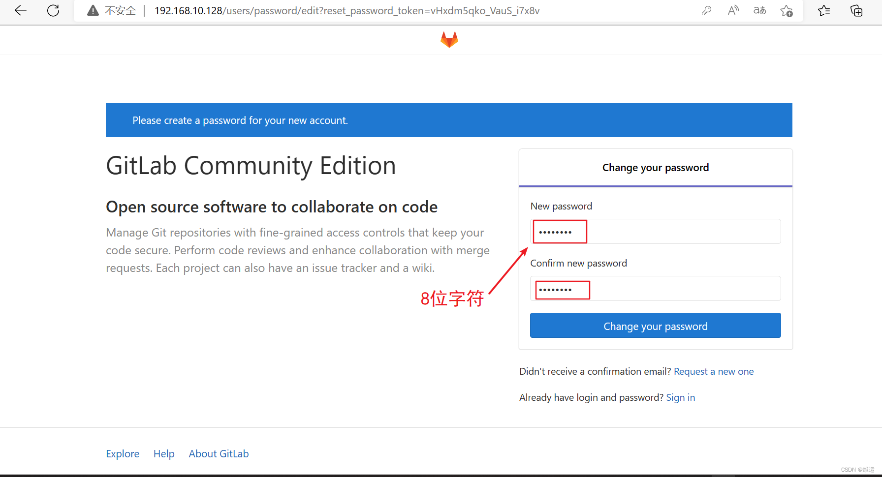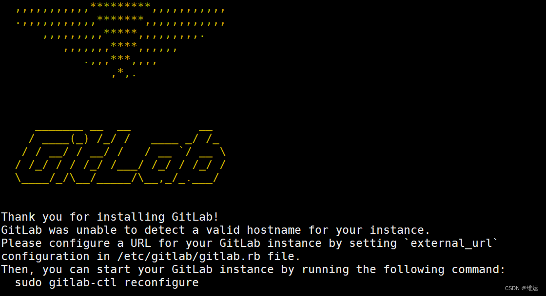 显示的内容说:你需要配置url给你的gitlab实例,在/etc/gitlab/gitlab.rb文件,external_url就是暴露访问gitlab的ip地址,这里也可以用域名,需要做个本地解析,在/etc/host里修改,