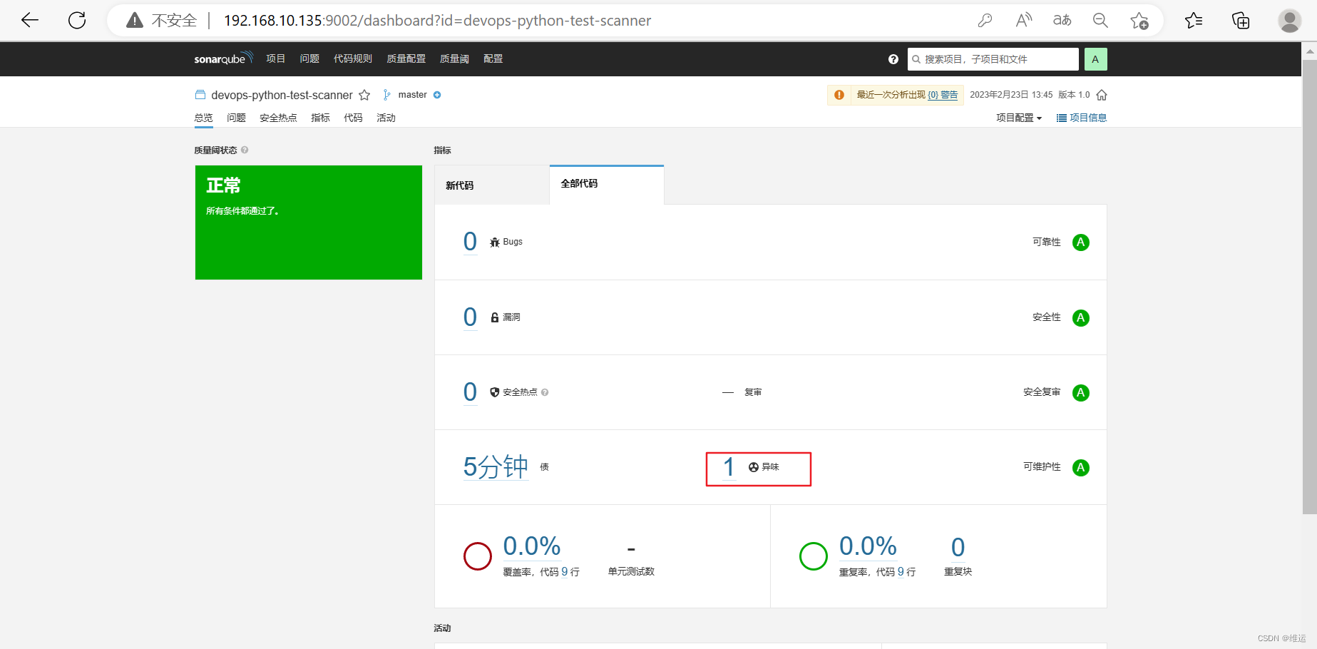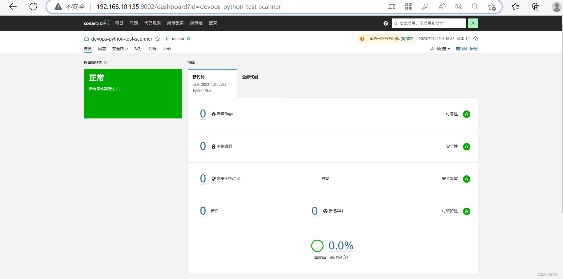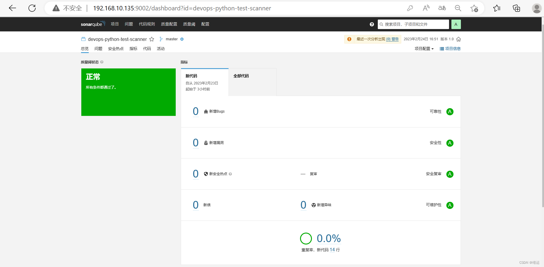 #登录soarqube查看扫描代码的结果 ,无任何问题