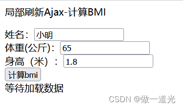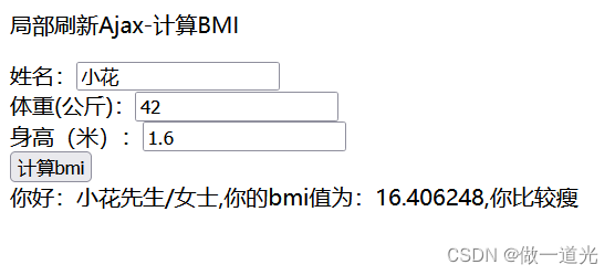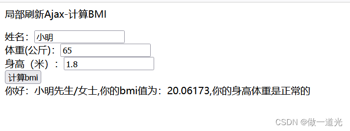 <input type="button" value="计算bmi" id="btn1" onclick="doAjax()" >