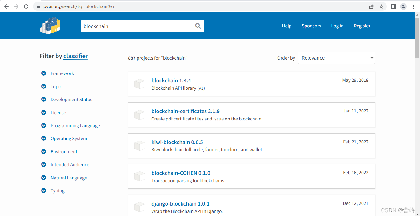 第1步:在PyPI,org搜索blockchain(区块链的英文名称)