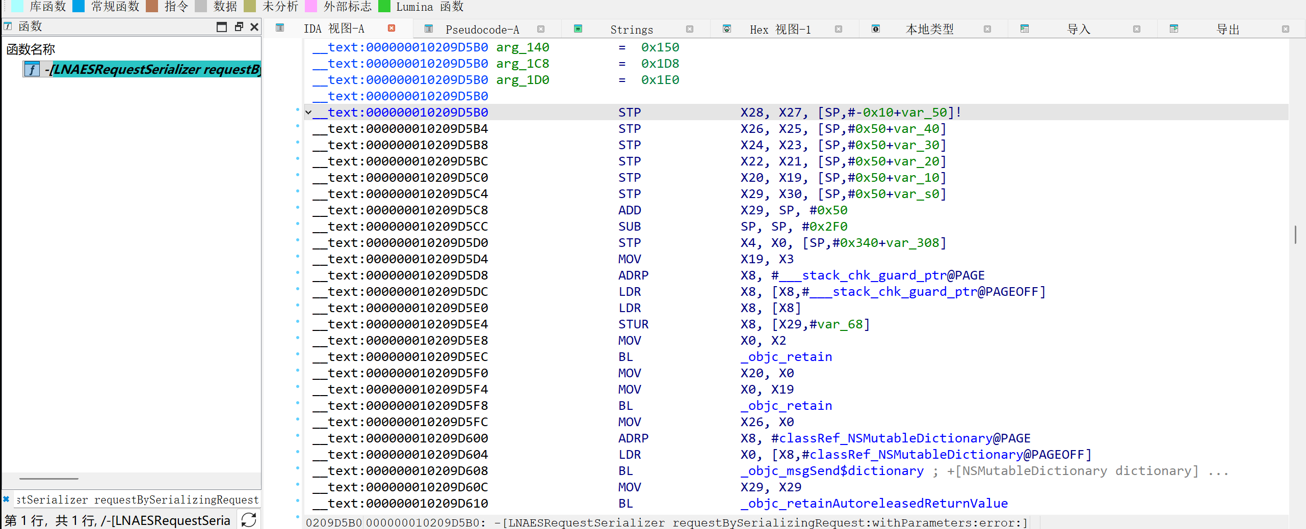 回到函数LNAESRequestSerializer requestBySerializingRequest