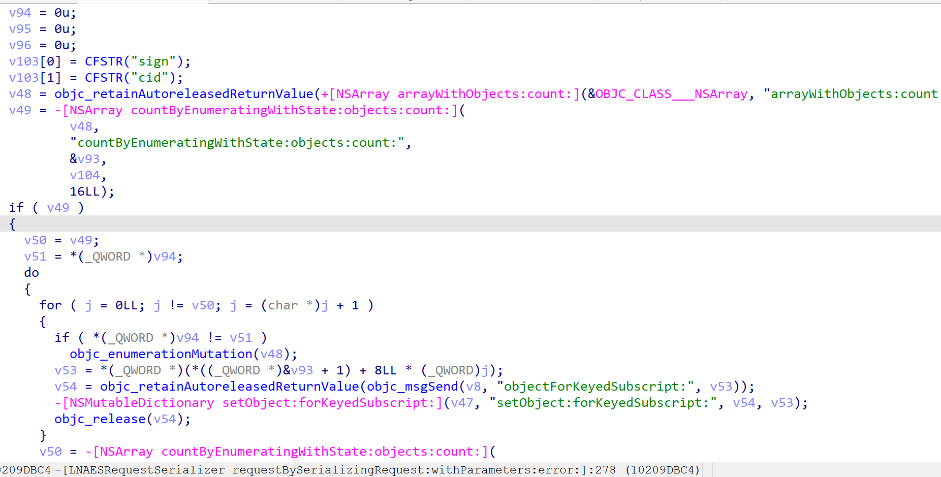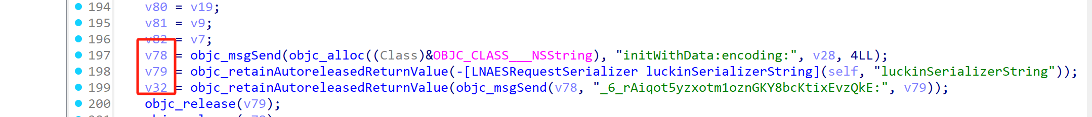 v79 = objc_retainAutoreleasedReturnValue(-[LNAESRequestSerializer luckinSerializerString](self, "luckinSerializerString")); // 获取密钥