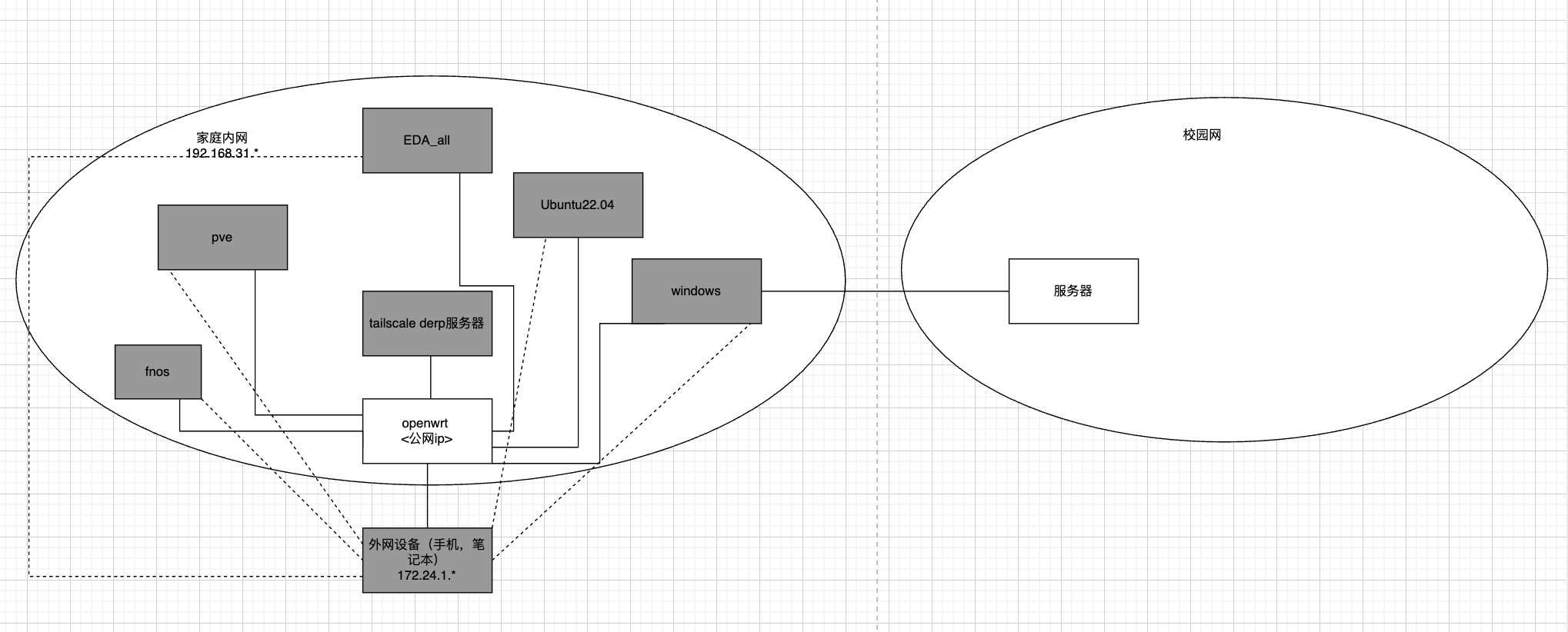 主要需求就是在移动网络下可以访问本地的 NAS 系统。 并且因为从事硬件设计,所以搭建了 EDA_ALL 虚拟机来写自己的项目。并且能够通过家里的机器挂校园网。