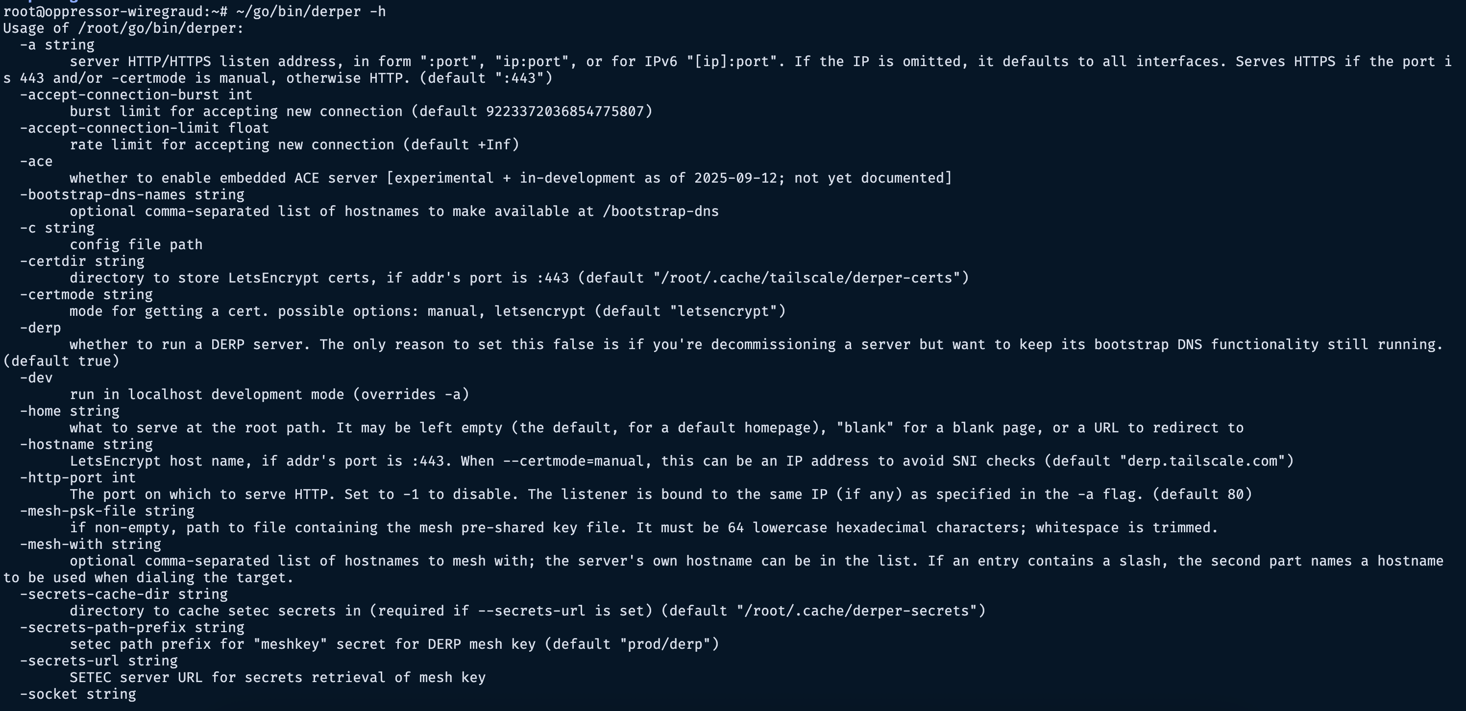 derper -hostname yourdomain.com \ -certmode manual \ -certdir ~/derper/ssl \ -verify-clients \ -http-port -1 \ -a :4443 \ -stun-port 53478