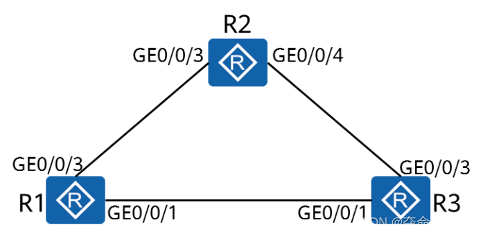 R1、R2、R3都是各自网络的网关设备,现在需要通过相应的配置,来实现这些网络之间的互联互通。