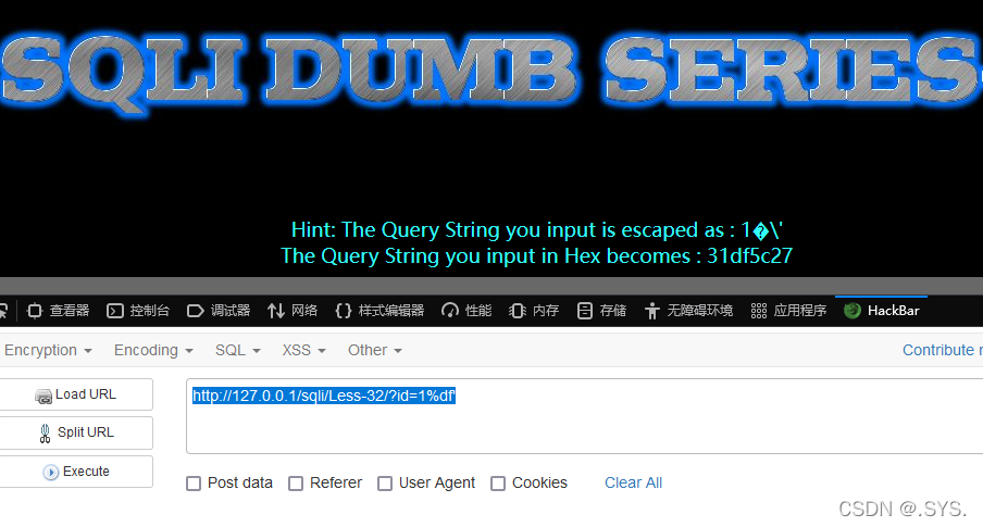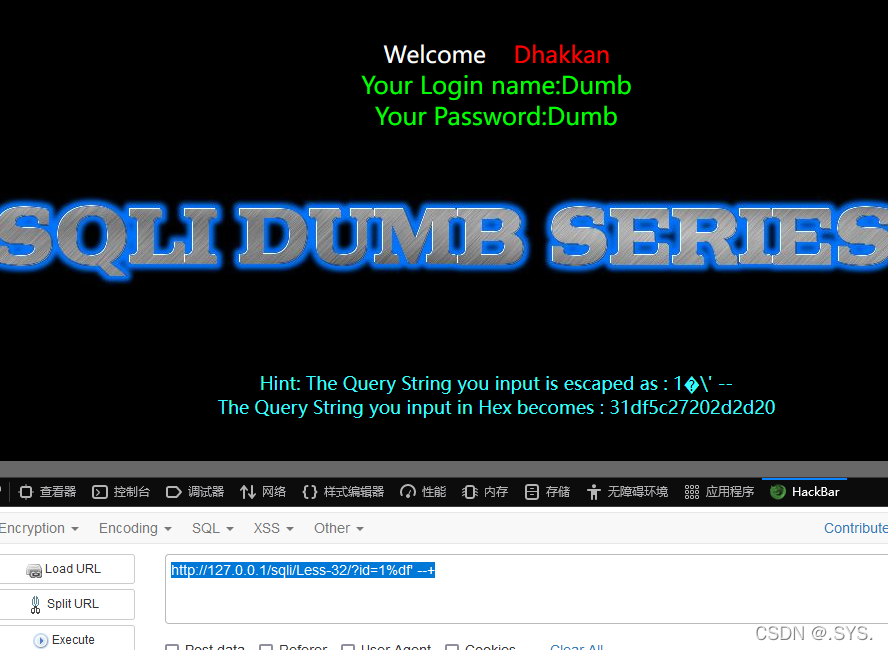 http://127.0.0.1/sqli/Less-32/?id=1%df'