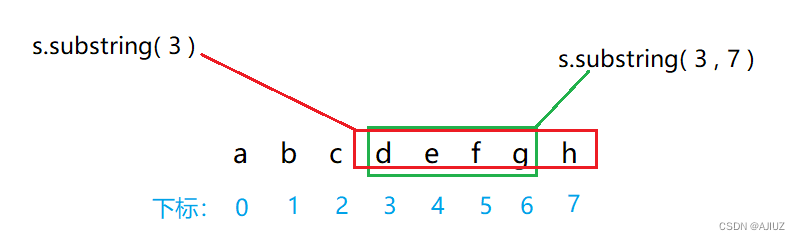- s.substring( int beginIndex, int endIndex ):返回下标[ beginIndex, endIndex ) 内的字符串。