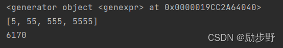 不得不提到的迭代器对象(这里的range()产生的就是一个迭代器对象), python generator object,只要记得在这种语句直接出来的是迭代器对象,需要转换为其他的类型输出。详见