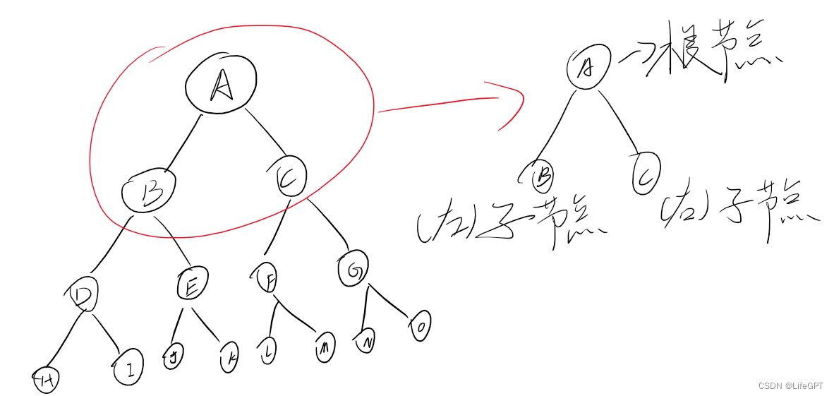 其实对于最上面的A节点来说,下面的所有节点(B、C、D、E、F、G、H、I、J、K、L、M、N、O)都是A的子节点
