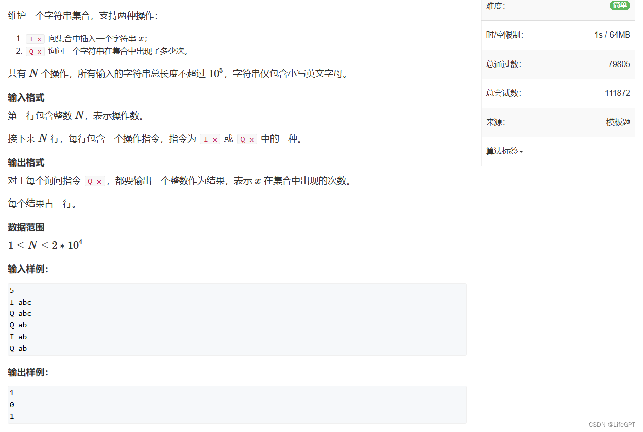 本文介绍了Trie(字典树)这一高效的数据结构,用于字符串集合的存储和检索。通过实例展示了字典树的构建过程,以及如何通过字典树进行字符串查找。文章还包括了一个Acwing平台上的字符串统计问题的解题代码示例。