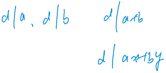 如果 d 能整除 a,并且 d 能整除 b,d 就能整除 a + b,也能整除 a 的若干倍 + b 的若干倍