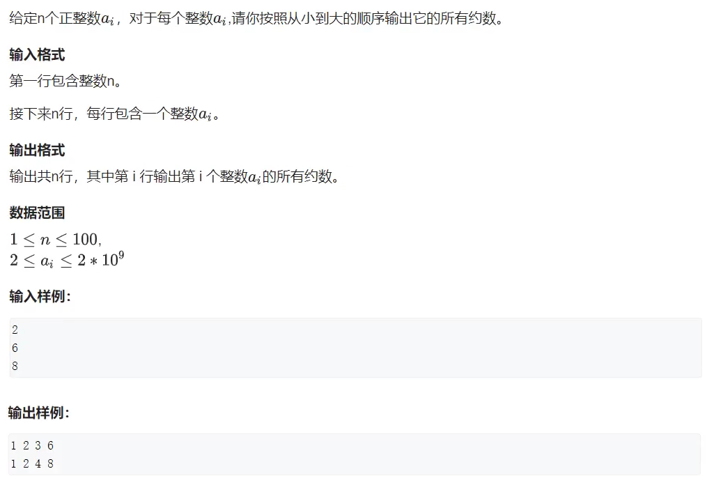 从小到大枚举所有的约数,如果当前数能整除这个数的话,说明这个数就是当前数的约数
