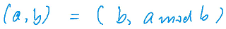 利用这个性质,a 和 b 的最大公约数等于 b 和 a mod b 的最大公约数