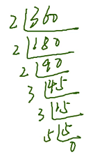 接下来求 360 的正约数,我们通过短除法把它的正约数造出来,有多少种造法就有多少个正约数