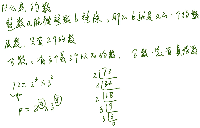 因为 72 这个合数的任意一个约数,都可以表示成 2^x 3^y