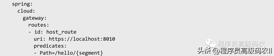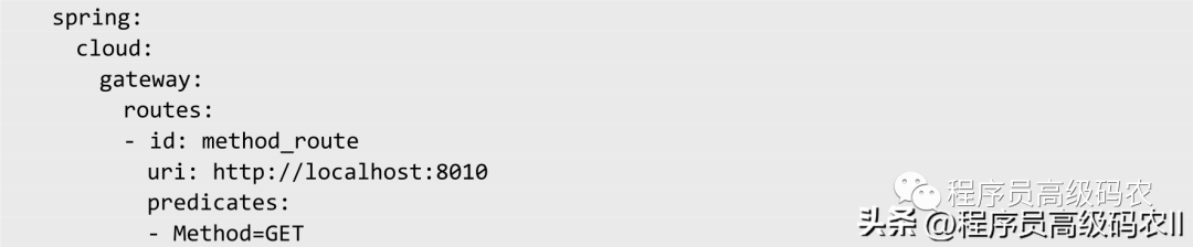 第二个Predicate基于服务ID发现的方式。配置文件的第二个路由的配置采用与注册中心相结合的服务发现方式,与单个URI的路由配置相比,区别其实很小,仅在于URI的schema协议不同。单个URI地址的schema协议,一般为HTTP或者HTTPs协议。