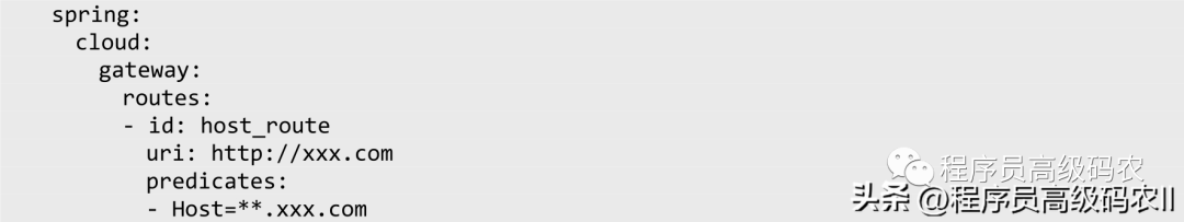 Spring Cloud Gateway 可 以 根 据 Host 名 进 行 匹 配 转 发 , HostRoute Predicate接收一组参数、一组匹配的域名列表。它通过参数中的主机地址作为匹配规则。