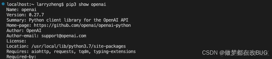 pip3 show openai 可以查看 openai 的版本. openai 的版本要大于 1.0