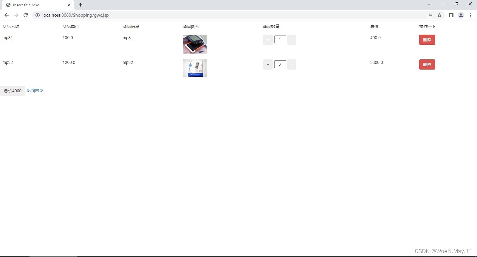 这个博客展示了如何利用Java的Session对象在Web应用中实现一个简单的前端购物车功能。用户可以通过点击按钮将商品添加到购物车,购物车页面能够显示商品的名称、单价、数量和总价,并允许用户修改数量或删除商品。通过`dogwc.jsp`页面处理增加和删除操作,实时更新购物车状态。