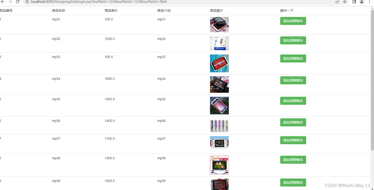 数据访问层包含:dologin登录,dogwc购物车,dosc删除,doupdate修改