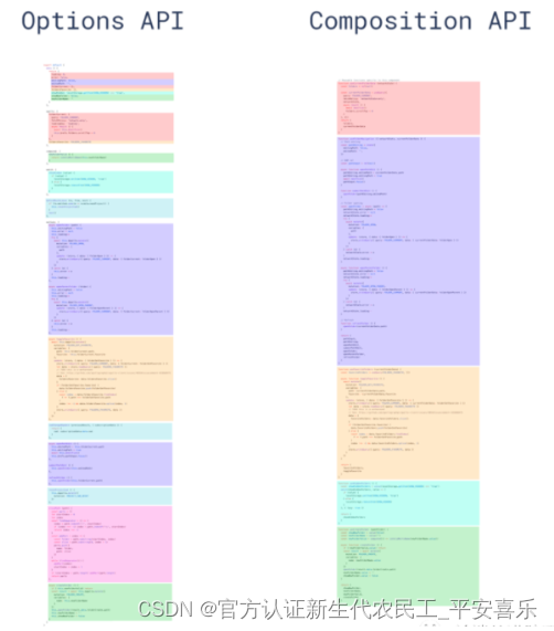 选项API写法- 代码风格:data选项写数据,methods选项写函数...,一个功能逻辑的代码分散。