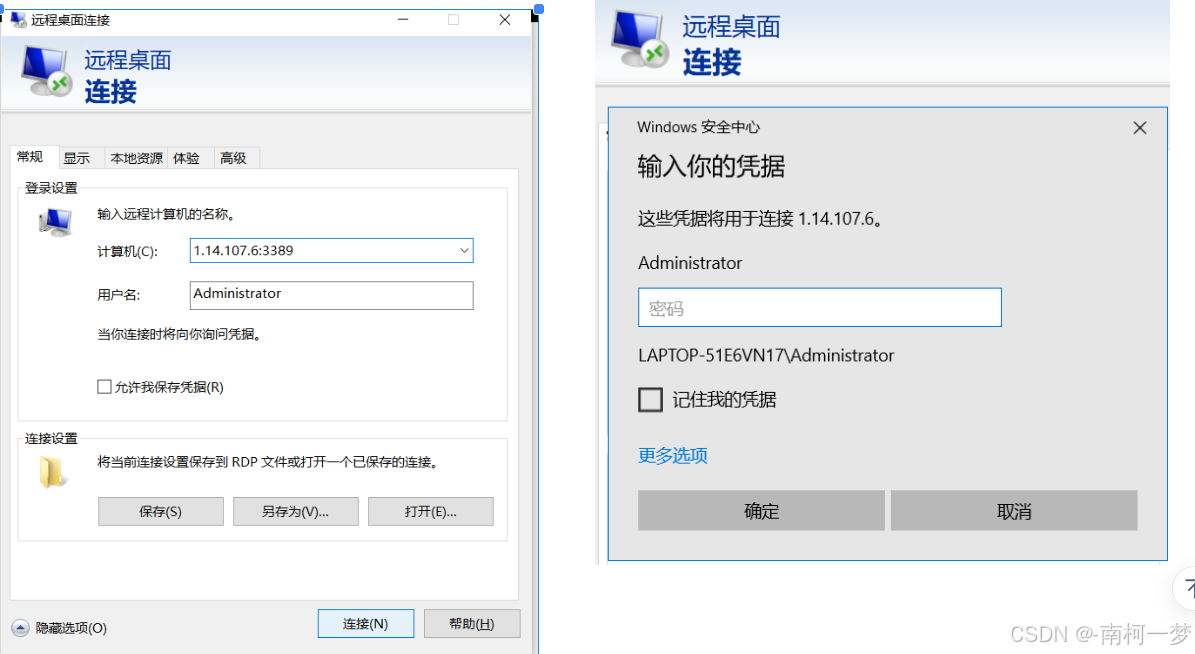 (linux 默认root,windows默认用户名Administrator,默认端口3389,修改了的话,远程要加上新的端口,win+r—mstsc)