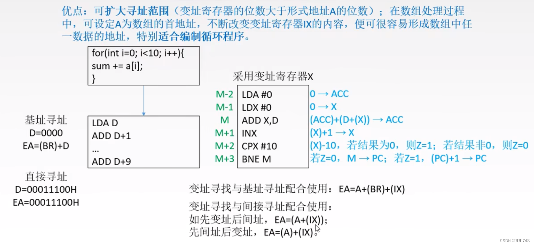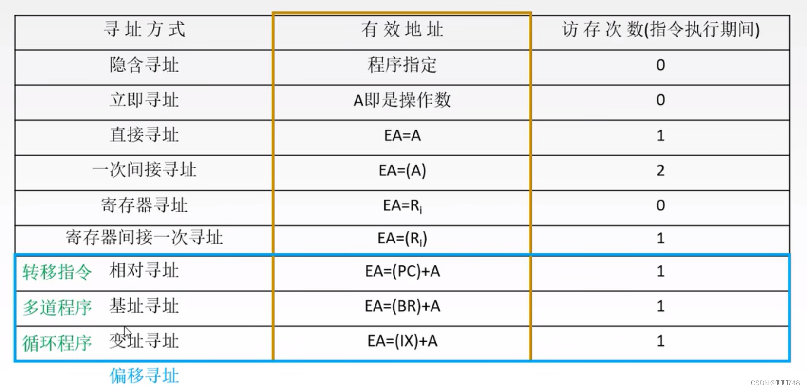 概念:操作数的地址保存在某一个内存单元中,指令当中出现的是内存单元的地址,有效地址由形式地址间接提供
