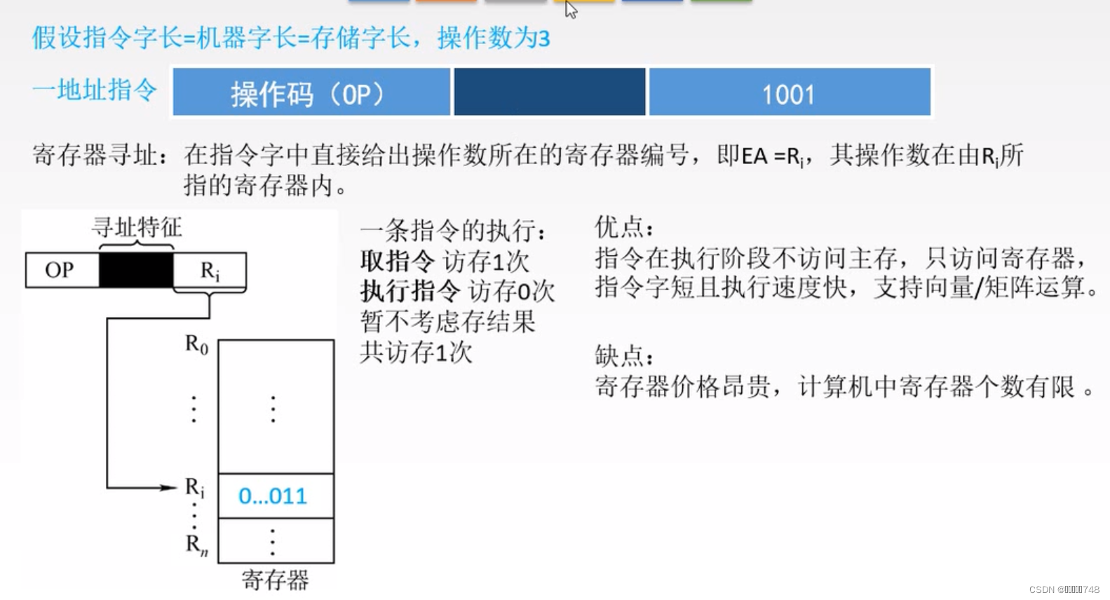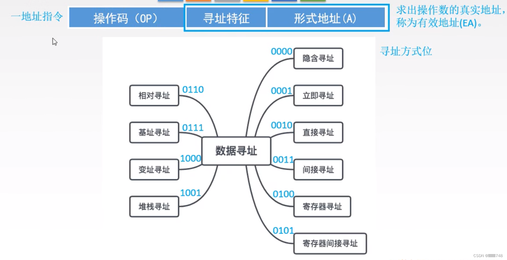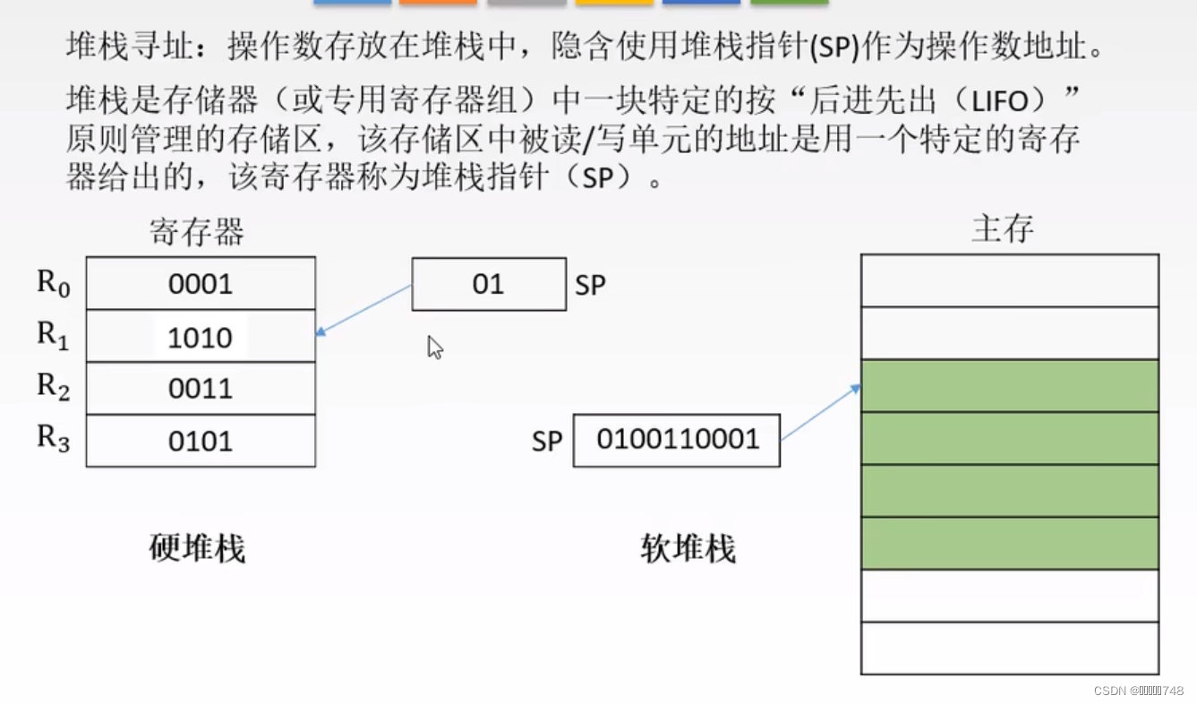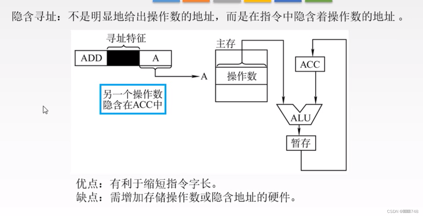 隐含:将寻址方式隐藏到操作码中,或者参与运算的某一个数据所在位置由操作码给出
