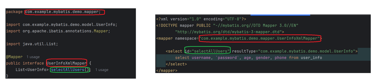 定义和数据库表对应的 Java 类(比如 UserInfo