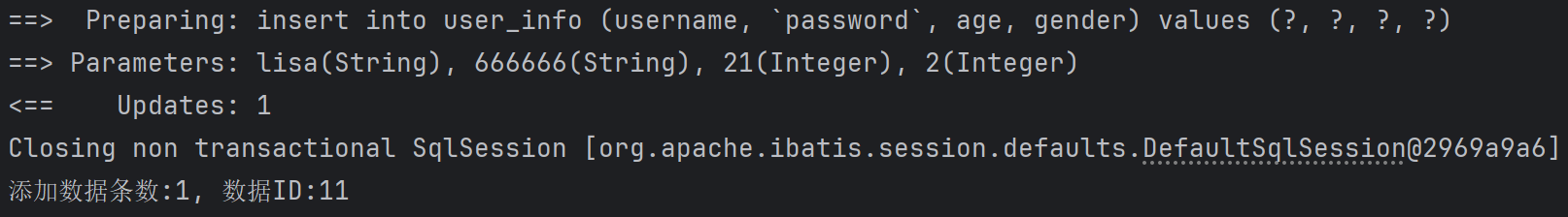 从上面的例子中,可以得出结论:${}会有SQL注入的风险,所以我们尽量使用#{}完成查询
