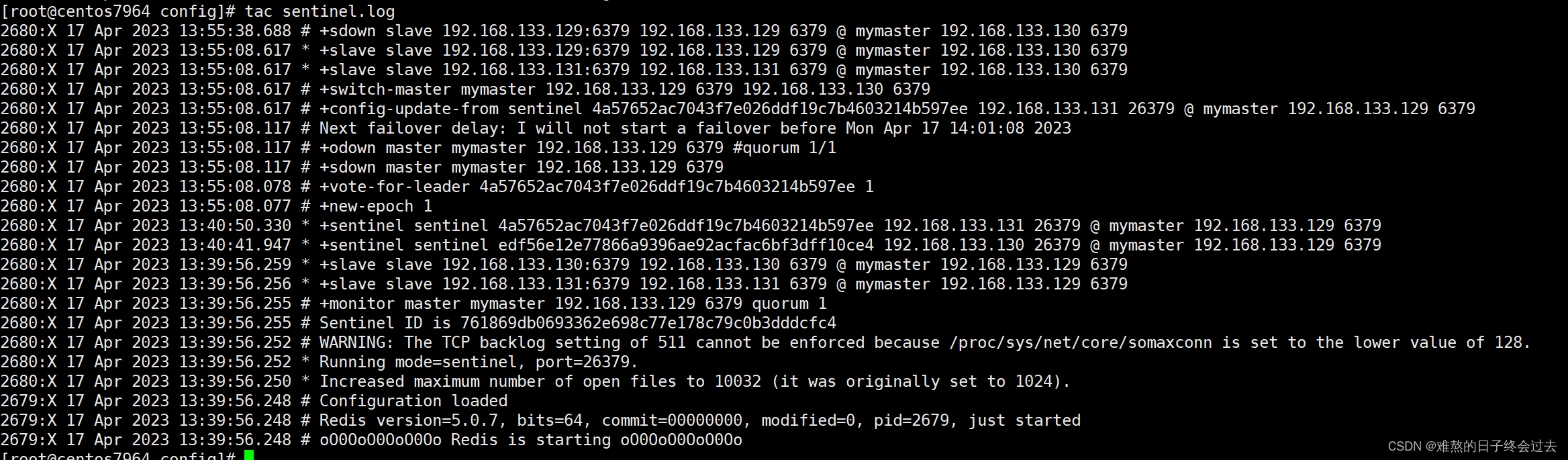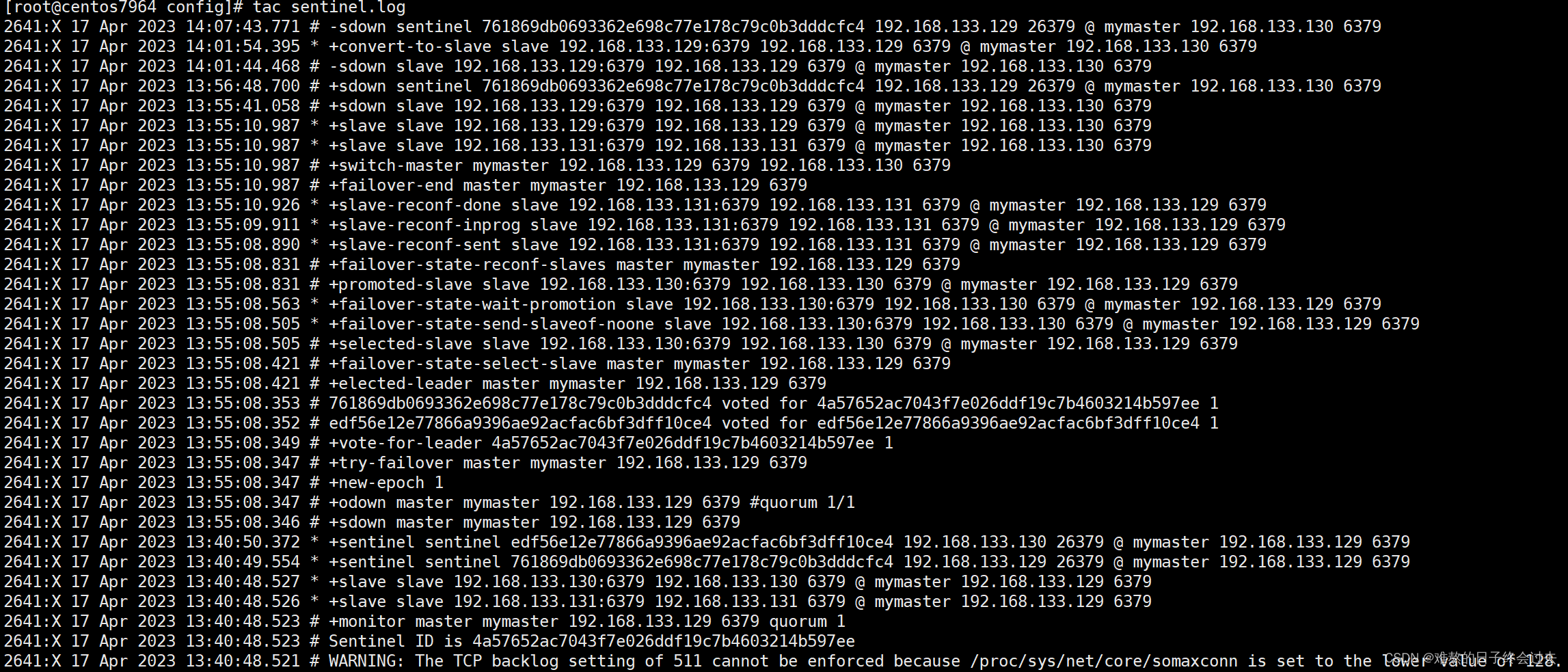 sentinel monitor mymaster 192.168.133.129 6379 1