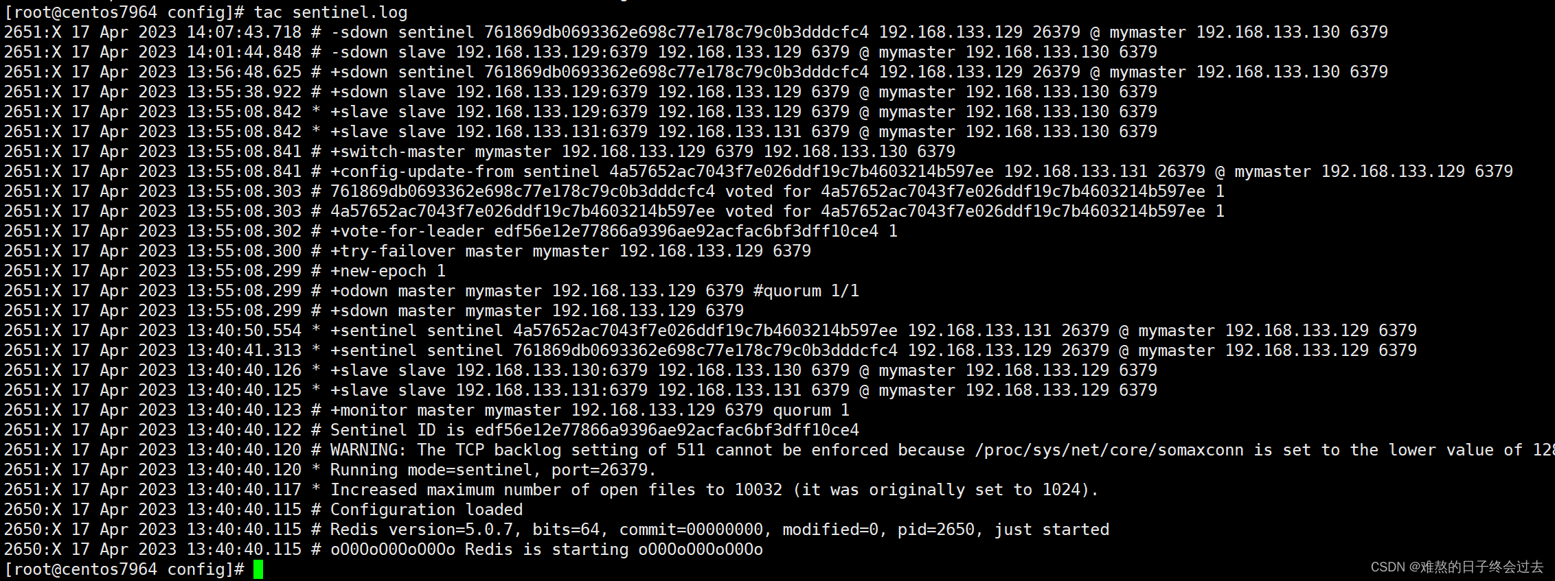 #由于当前sentinel守护进程运行的,所以具体的日志内容我们设置在当前目录下的sentinel.log中查看