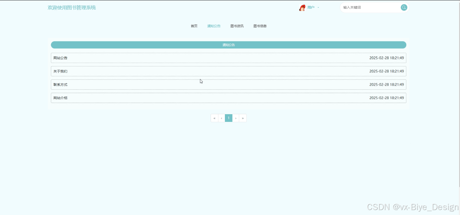 - 通知公告:此功能模块用于发布和展示图书馆的最新通知和公告信息,用户可以查看最新的图书馆活动、规则变更等重要信息。