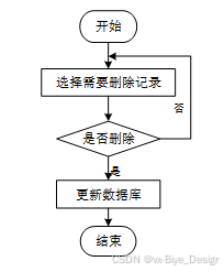 用户选择需要删除的记录后,系统判断是否确认删除。若未确认,返回选择环节;若确认删除,则更新数据库,删除对应记录,完成操作后流程结束。删除信息流程图如图3-8所示。