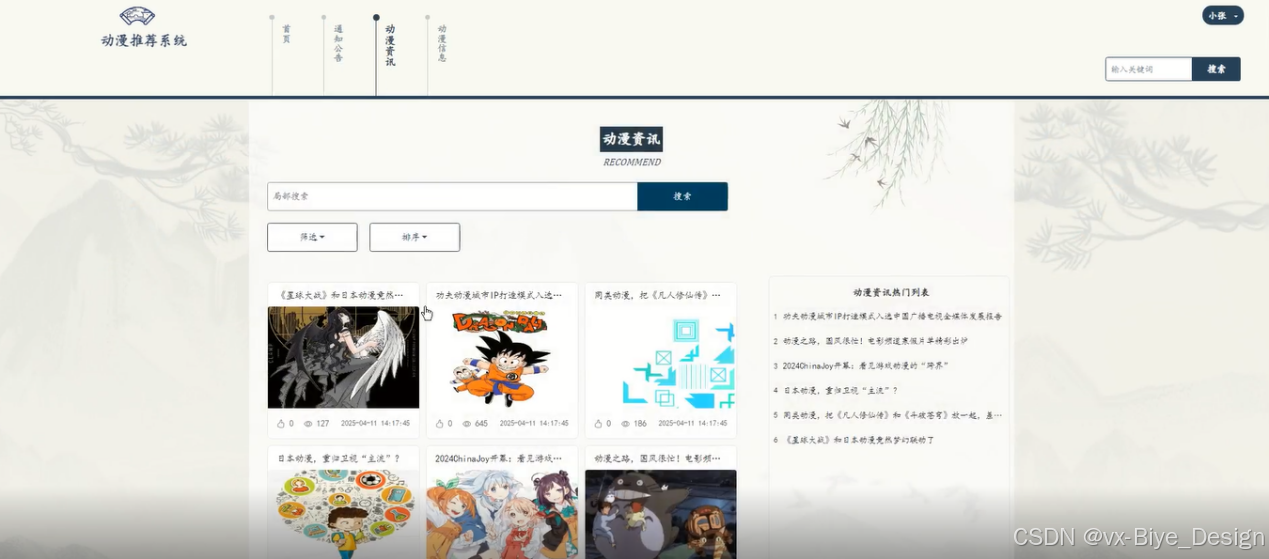 Keywords: anime recommendation system; SpringBoot; Vue; MySQL; Java
