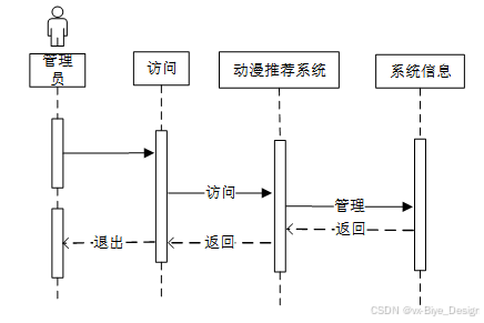 管理员通过访问系统发起请求,系统接收访问后转向系统信息模块进行管理操作。管理完成后,系统返回管理结果至系统,最终反馈给管理员,管理员可选择退出。管理员管理系统信息时序图如图4-6所示。