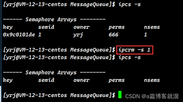 指令释放:直接通过指令 ipcrm -s semid 释放信号量集: